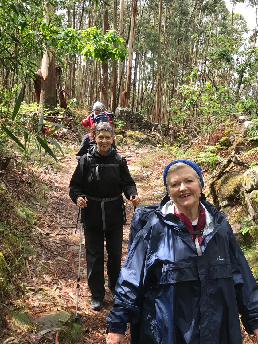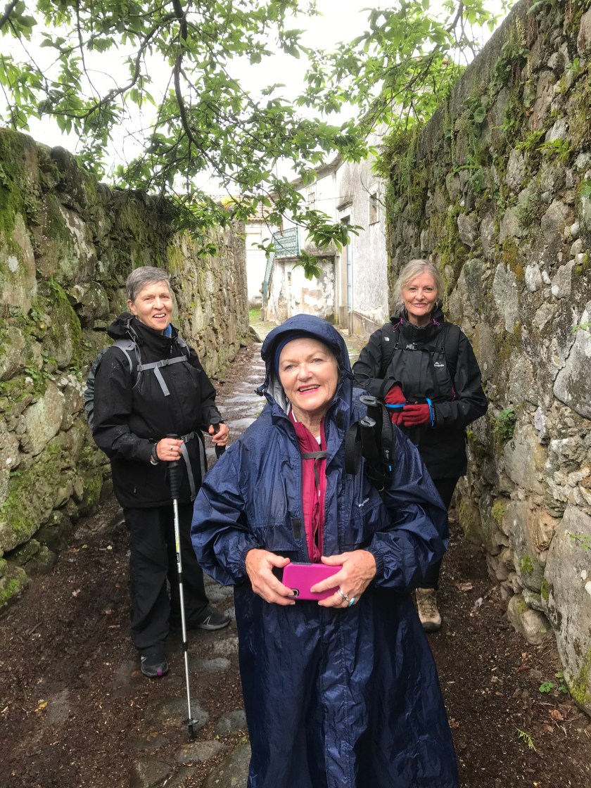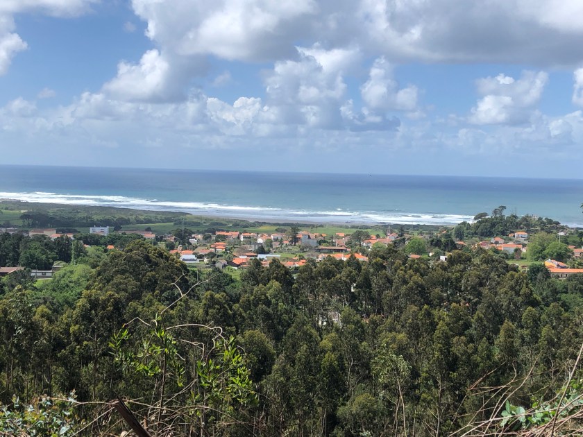 More rain then blazing sunshine. After very clear markings we lost the arrows but continued towards the beach. As we emerged from our street we saw a whole posse of pilgrims stream past. We wondered what route they had taken because we haven’t seen any for at least 15 minutes. These were in fact a new group we think started in A Guarda, perhaps a parish pilgrimage. They were of all ages and in high spirits and crowded the path. Anne and I took to the road to pass them but the group engulfed Irene and in her attempt to get out of the group she slipped on wet boardwalk and tumbled down, grazing her arm. We all eventually overtook them and looking back they seemed like a group of zombies after us!