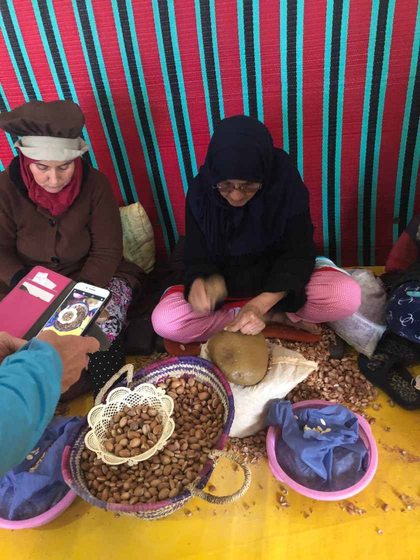 or arid again. Our next stop was a brief bank visit in Marrakech before the argon oil cooperative which we arrived at quite late. The woman guide was very pleasant but spoke so fast and wasn’t really good at listening to our questions. After the brief tour we ended up in the shop where this super saleswoman told Anne she needed Argon oil for her hair! They also sell a miracle serum from Cactus flowers which we all needed according to her! Curiosity got the better of us and we bought the products and had them all shipped to Anne’s Mum in Australia. We are going to be looking amazing by Christmas.