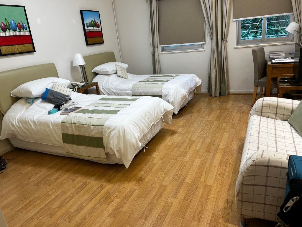 My sister-in-law is a member and suggested we stay, but she isn’t here! I can understand why. Three codes to get into the place! I have taken a photo because I probably won’t be able to remember them. Having said that, the room is pretty generous by HK standards and we have a kitchenette and use of washing machines plus very reasonable in price. It is quaint.